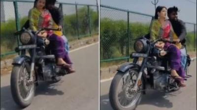 बुलेट पर स्टंट रील बनाना पड़ा महंगा, युवती को मिला ₹13,000 का चालान