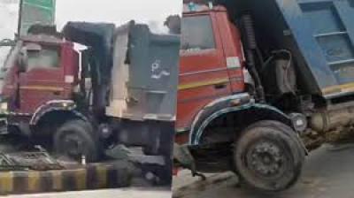 ग्रेटर नोएडा में बड़ा हादसा, अनियंत्रित ट्रक गोलचक्कर में घुसा