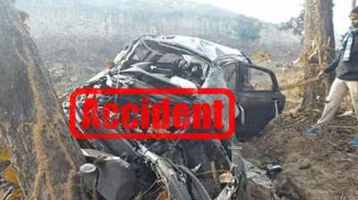 सड़क हादसा: तेज रफ्तार कार अनियंत्रित होकर 25 फीट नीचे खाई गिरी, दो की मौत