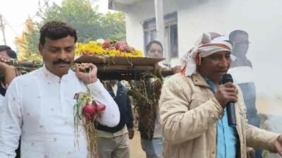 MP में नाराज किसानों का अनोखा प्रदर्शन, प्याज की अर्थी सजाकर निकाली अंतिम यात्रा, श्मशान में दी गई मुखाग्नि