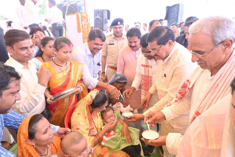 शिविर में प्रभारी मंत्री बघेल एवं विधायक ने 5 गर्भवती महिलाओं को पोषण आहार किट प्रदान कर गोदभराई रस्म एवं 2 शिशुओं का अन्नप्रासन किया। साथ ही उनके उत्तम स्वास्थ्य एवं उज्जवल भविष्य की शुभकामनाएं दी। साथ ही टीबी मुक्त भारत अभियान में उत्कृष्ट कार्य के लिए ग्राम पोंड, कुटेना, फुलझर एवं मुरमुरा के सरपंच, स्वच्छता के क्षेत्र में उत्कृष्ट कार्य करने वाले स्वच्छाग्राहियों एवं मेधावी विद्यार्थियों को सम्मानित किया। इसके अलावा हितग्राहियों को ट्रायसिकल, आइस बॉक्स सौर सुजला किट, मछली जाल जैसे सामग्री एवं राशन कार्ड का वितरण भी किया। इस अवसर पर विधायक साहू ने मुख्यमंत्री विष्णु देव साय के मंशानुरूप राज्य में शुरू किए गए सुशासन तिहार के आयोजन के उद्देश्यों के संबंध में विस्तार से जानकारी दी। उन्होंने सुशासन तिहार के आयोजन के निर्णय को राज्य सरकार के अत्यंत जनहितैषी एवं संवेदनशील निर्णय बताते हुए सराहना की। उन्होंने कहा कि इस सुशासन तिहार के माध्यम से राज्य सरकार के द्वारा शासकीय काम-काज में पारदर्शिता लाने तथा शासकीय योजनाओं और कार्यक्रमों का प्रभावी क्रियान्वयन सुनिश्चित करने का कारगर प्रयास किया जा रहा है। साथ ही प्रदेश में मोदी जी की गारंटी को तत्परता से पूर्ण किया जा रहा है।