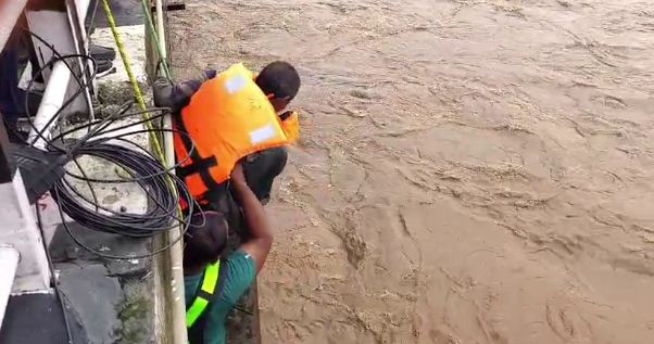 मंडला: जिले में लगातार हो रही झमाझम बारिश और खतरे के निशान से ऊपर बह रही नर्मदा नदी के रौद्र रूप को देखकर हर कोई दहल उठता है. लेकिन हम आपको ऐसे व्यक्ति के बारे में बताने जा रहें है जिसको ना तो बारिश का डर है और ना ही नर्मदा नदी का रौद्र रूप देखकर कोई भय. मंडला SDRF टीम ने एक ऐसे व्यक्ति का रेस्क्यू किया है जो जाने कितने दिनों से नर्मदा नदी के पुल और पिलर के बीच में आशियाना बनाकर रह रहा था.