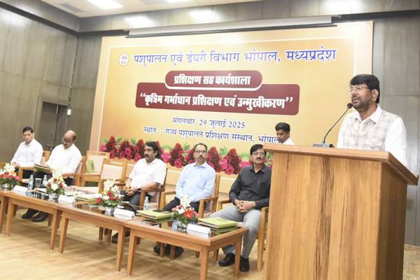 भोपाल : पशुपालन एवं डेयरी राज्य मंत्री (स्वतंत्र प्रभार) लखन पटेल ने कहा है कि देश की आर्थिक उन्नति में दुग्ध उत्पादन का महत्वपूर्ण स्थान है। गौ एवं भैंस वंशीय पशुओं की नस्ल सुधार कर दुग्ध उत्पादन में काफी बढ़ोतरी की जा सकती है। कृत्रिम गर्भाधान के माध्यम से नस्ल सुधार को एक अभियान के रूप में चलाया जाए। मुख्यमंत्री डॉ. मोहन यादव के नेतृत्व में दुग्ध उत्पादन को 9% से बढाकर 20% तक किए जाने का लक्ष्य निर्धारित किया गया है। हमें इसे पूरा करना है और गुणवत्ता पूर्ण कृत्रिम गर्भाधान से नस्ल सुधार और ब्रीडिंग कवरेज बढ़ाकर दुग्ध उत्पादन में वृद्धि की जा सकेगी। केंद्र द्वारा चलाए जा रहे राष्ट्रीय कृत्रिम गर्भाधान कार्यक्रम को भी प्रदेश में प्रभावी ढंग से संचालित किया जाए।