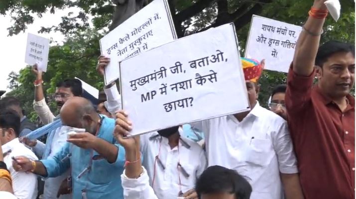 विधायकों ने तख्तियां लेकर प्रदर्शन किया। एक कांग्रेस विधायक की तख्ती में लिखा हुआ था कि जो सरकार रोजगार नहीं दे सकती, वो ड्रग्स माफिया को संरक्षण दे रही है। इसके साथ ही एक अन्य विधायक ने तख्ती को लेकर प्रदर्शन किया जिसमें लिखा हुआ था मुख्यमंत्री जी बताओ, एमपी में नशा कैसे छाया? इसके साथ ही एक तख्ती में लिखा हुआ था कि भोपाल की एमडी ड्रग्स किसकी थी।बीजेपी पर आरोप लगाते हुए एक तख्ती पर लिखा कि नशे से लाचार प्रदेश, भाजपा का यही संदेश।