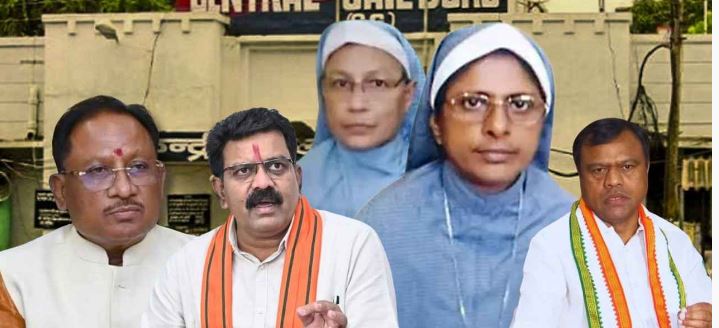 दुर्ग। छत्तीसगढ़ के दुर्ग रेलवे स्टेशन पर GRP ने कुछ दिनों पहले केरल से आईं दो मलयाली ननों को गिरफ्तार किया था। ये कार्रवाई ह्यूमन ट्रैफिकिंग और कंवर्जन के मामले में की गई थी. 9 दिन बाद दुर्ग जेल में बंद दोनों ननों को सशर्त बेल दे दी गई है। दोनों ननों की जमनात को लेकर प्रदेश में सियासत गरमा गई है। इस मामले में PCC चीफ दीपक बैज ने हमला बोला है. वहीं, CM विष्णु देव साय और गृह मंत्री विजय शर्मा का भी बयान सामने आया है।