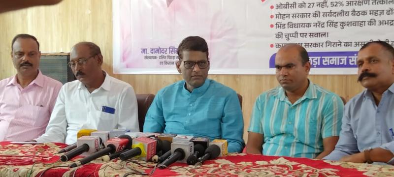 सत्ताधारी भाजपा हो या मुख्य विपक्षी दल काँग्रेस, दोनों ही ओबीसी पर 27 प्रतिशत कर राग अलाप रहे है। 30 जुलाई को दलित पिछड़ा समाज संगठन द्वारा किए गए विधानसभा घेराव कार्यक्रम में हमने मांग रखी थी कि ओबीसी को 27 प्रतिशत की भीख नहीं 52 प्रतिशत आरक्षण चाहिए। 20 अगस्त को मुख्यमंत्री मोहन मादव ने सर्वदलीय बैठक बुलाई लेकिन उसमें आजाद समाज पार्टी (भीम आर्मी) को सम्मिलित न करना बेहद निदंनीय है। हमारी पार्टी की गैर मौजूदगी के कारण ही बैठक में ओबीसी को सिर्फ 27 प्रतिशत आक्षण देने पर ही चर्चा हुई। अगर हमारा प्रतिनिधिच बैठक में होता तो बात 52 प्रतिशत की होती। हमारी लड़ाई है कि हम हर हाल में 52 प्रतिशत आरक्षण लेकर रहेंगे। भाजपा और कांग्रेस को पिछड़ों के नाम पर गदी राजनीति बंद कर देना चाहिये और अगर ओबीसी को 52 प्रतिशत आरक्षण नहीं दिया गया तो हम सीएम हाउस का घेराव कर फिरसे आंदोलन करेंगे। यह बात दलित पिछड़ा समाज संगठन के राष्ट्रीय अध्यक्ष एवं आजाद समाज पार्टी (भीम आर्मी के वरिष्ठ नेता दामोदर सिंह यादम ने पत्रकार वार्ता में कही।य खाने में दिख रहा है तो एक दूसरे पर आरोप लगा रहे हैं।