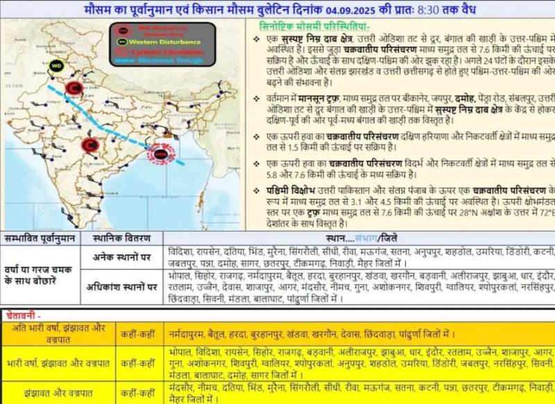 IMD का अलर्ट: मौसम विभाग ने प्रदेश के 39 जिलों में अगले 24 घंटों (गुरुवार सुबह 8.30 बजे तक) भारी से अतिभारी बारिश की चेतावनी जारी की है।