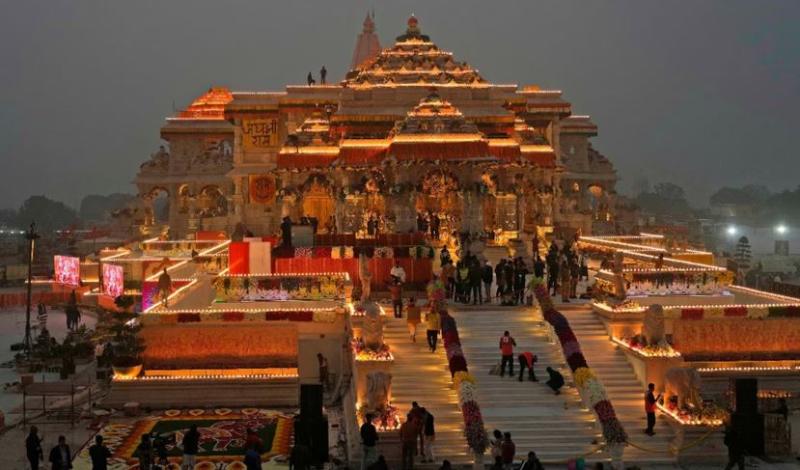 अयोध्या में श्रीराम जन्मभूमि पर निर्माण कार्य सम्पन्न, मंदिर परिसर सजा भव्य रूप में