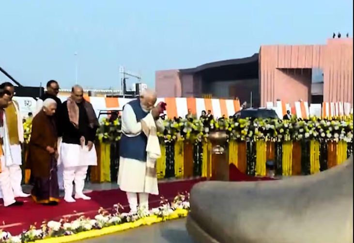 मीडिया रिपोर्ट के मुताबिक पीएम मोदी ने यहां भारत माता की मूर्ति का भी उद्घाटन किया। पुष्प अर्पित किए और हाथ जोड़कर प्रणाम किया। इससे पहले एयरपोर्ट पर सीएम योगी ने पीएम मोदी का स्वागत किया। प्रेरणा स्थल श्यामा प्रसाद मुखर्जी, दीनदयाल उपाध्याय और अटल जी को समर्पित है। तीनों नेताओं की 65-65 फीट ऊंची मूर्तियां लगाई गई हैं। बीच में दीनदयाल उपाध्याय की प्रतिमा है, जबकि दोनों ओर अटल बिहारी वाजपेयी जी और श्यामा प्रसाद मुखर्जी की प्रतिमाएं हैं। मूर्तियों का वजन 42-42 टन है।