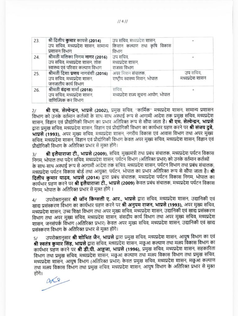 6. अनय द्विवेदी को वाणिज्य कर आयुक्त इंदौर बनाया गया है।