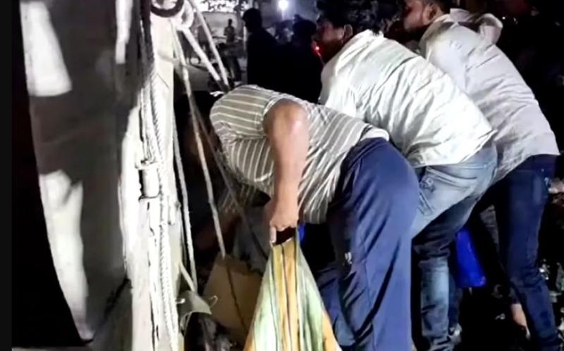ट्राला दुर्घटनाग्रस्त होते ही शराब की लूट, रोकने गई पुलिस टीम पर बरसे पत्थर