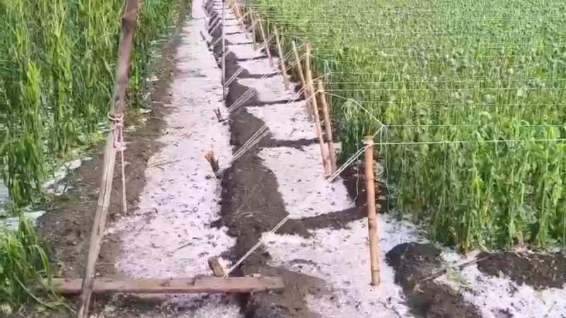 नीमच के खेतों में ओले गिरे, सफेद चादर बिछी, अफीम और अन्य फसलों की तबाही