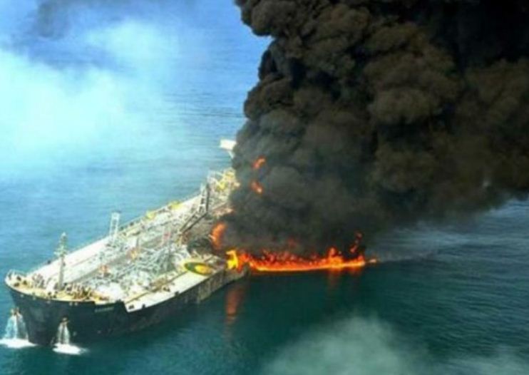 ओमान की खाड़ी में ऑयल टैंकर में आग