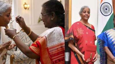 बजट से पहले राष्ट्रपति मुर्मू का परंपरागत स्वागत, सीतारमण को खिलाया दही-चीनी