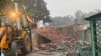 बुलडोजर और मजदूरों की टीम ने संभाली कमान, लगातार गिर रहे भवन