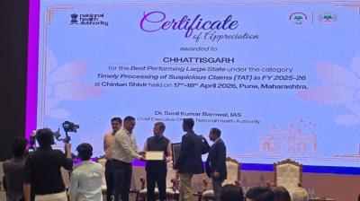 रायपुर : आयुष्मान भारत प्रधानमंत्री जन आरोग्य योजना के प्रभावी, पारदर्शी एवं परिणामोन्मुख क्रियान्वयन में उत्कृष्ट प्रदर्शन करते हुए छत्तीसगढ़ राज्य को राष्ट्रीय स्तर पर बड़ी उपलब्धि हासिल हुई है।...