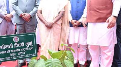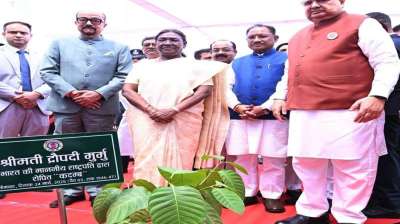 राष्ट्रपति द्रौपदी मुर्मु ने विधानसभा परिसर में किया कदम्ब का पौधरोपण