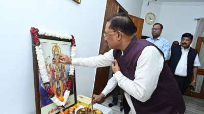 रायपुर : मुख्यमंत्री विष्णु देव साय ने आज यहाँ अपने निवास कार्यालय में आरोग्य के देवता भगवान धन्वंतरि की पूजा अर्चना कर प्रदेशवासियों के निरोगी एवं सुखमय जीवन की कामना...