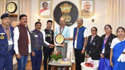 राज्यपाल डेका का स्काउट गाइड मुख्य संरक्षक अलंकरण बैज लगाकर किया गया सम्मान